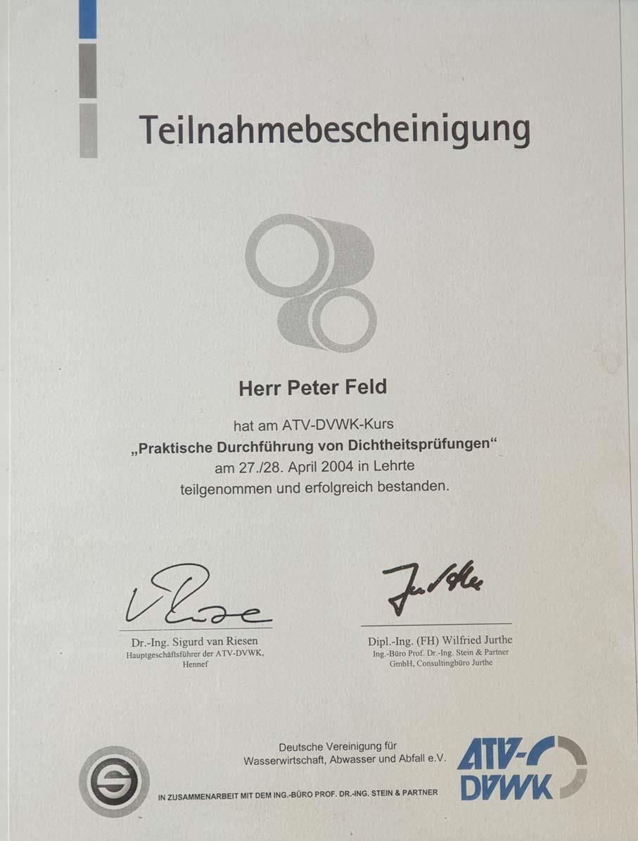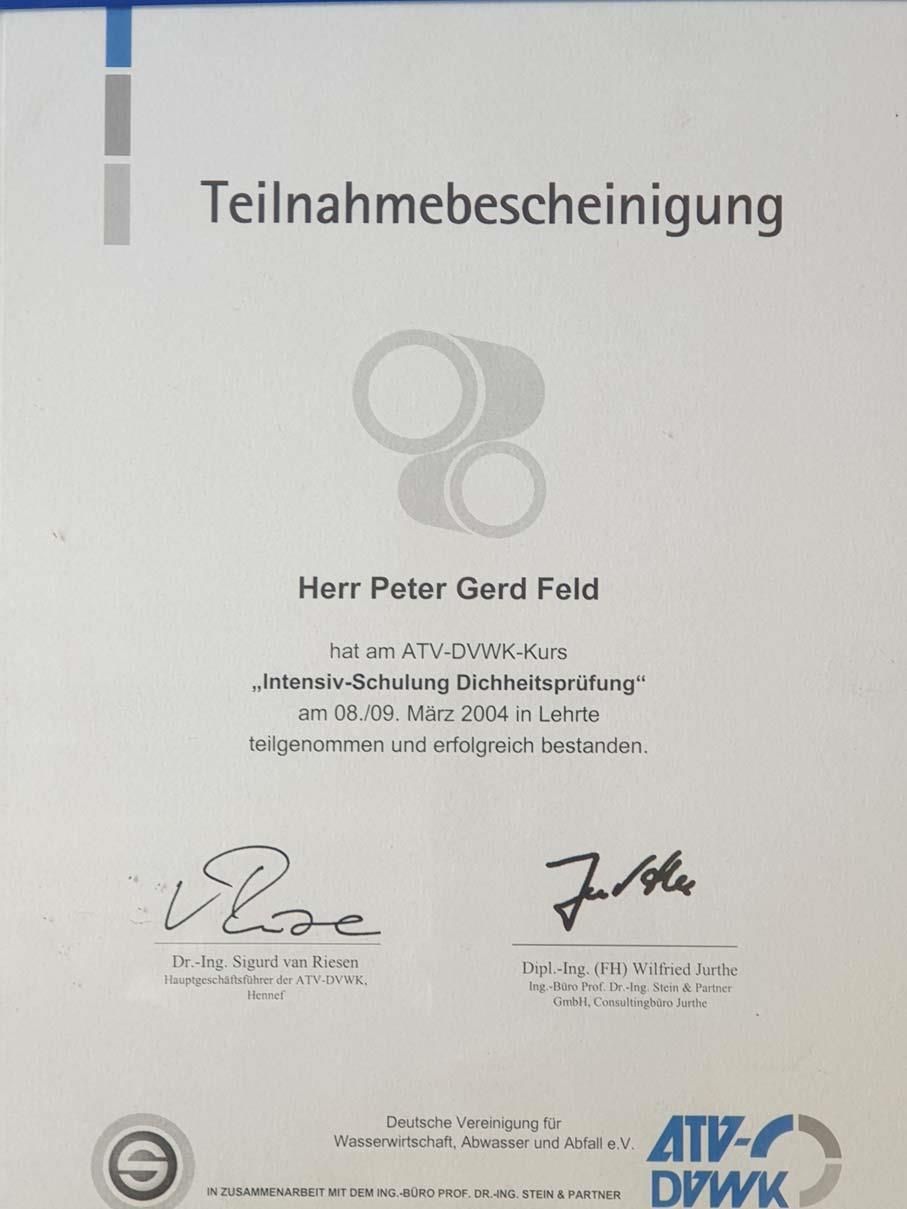 - Dichtheitsprüfungen nach DIN EN 1610 und DIN 1986 (Prüfmedien: Luft / Wasser)
